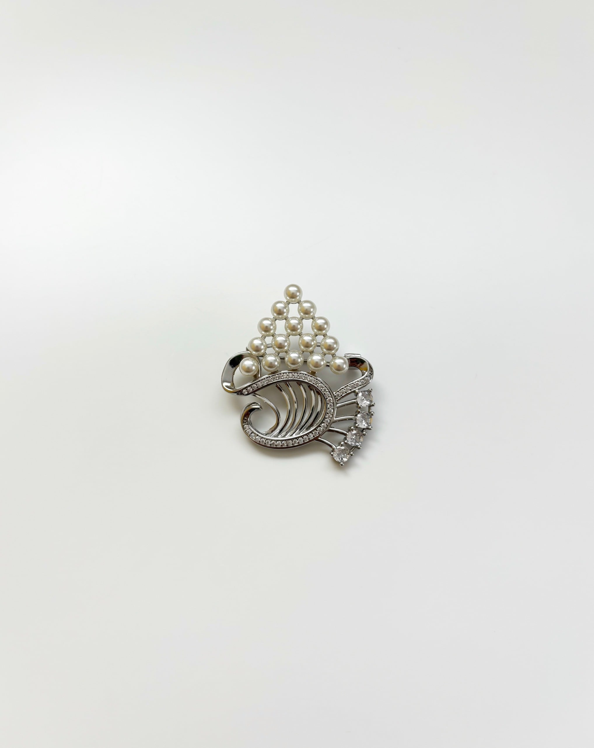 (色)シルバー (素材)ガラス、真鍮メッキ、フェイクパール (サイズ)横・約4.5cm 縦・約4cm