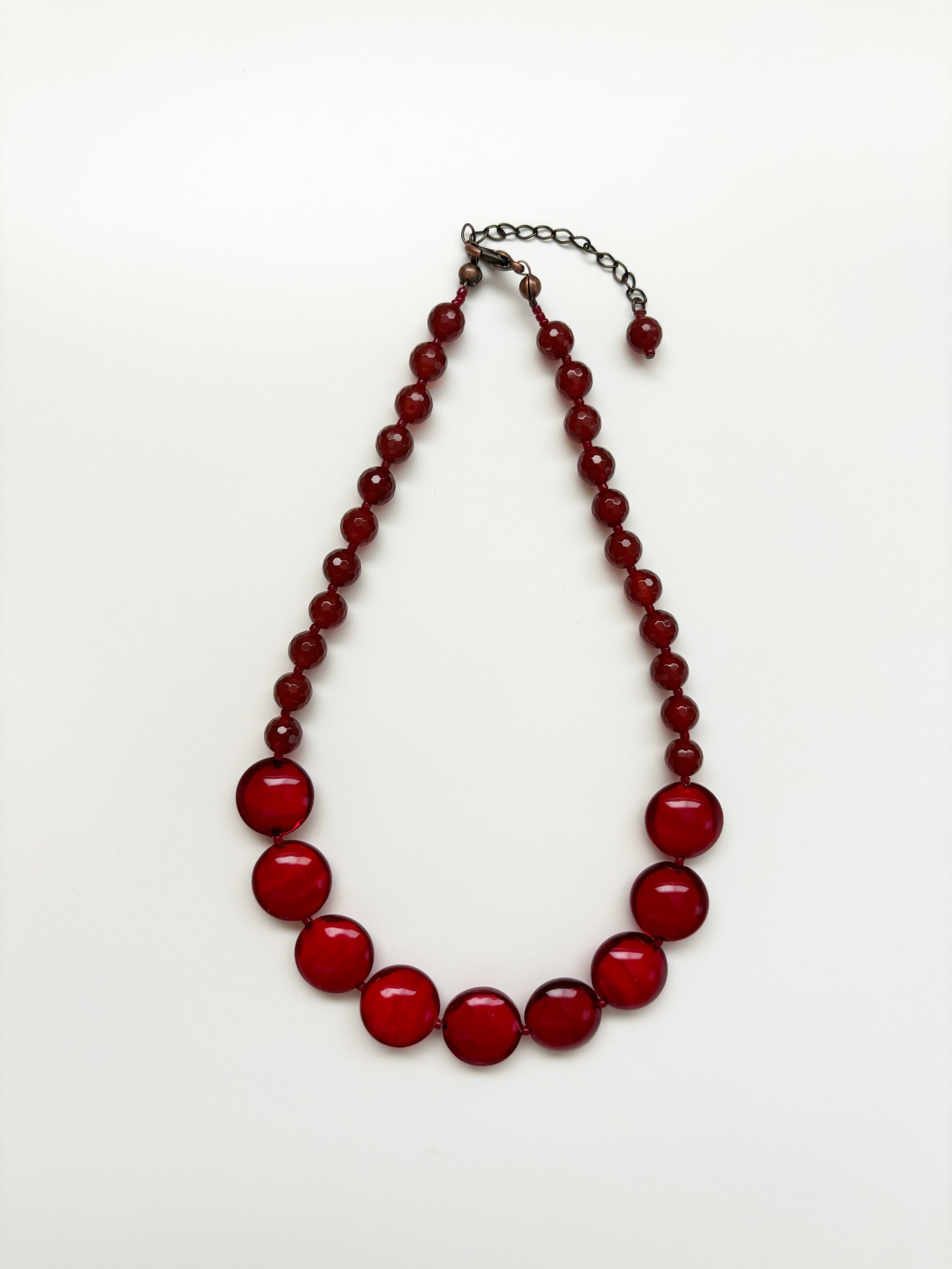 (色)レッド (素材)真鍮金具、ベネチアンガラス、ガラス、赤メノウ (サイズ)約37.5cm、アジャスター約6cm