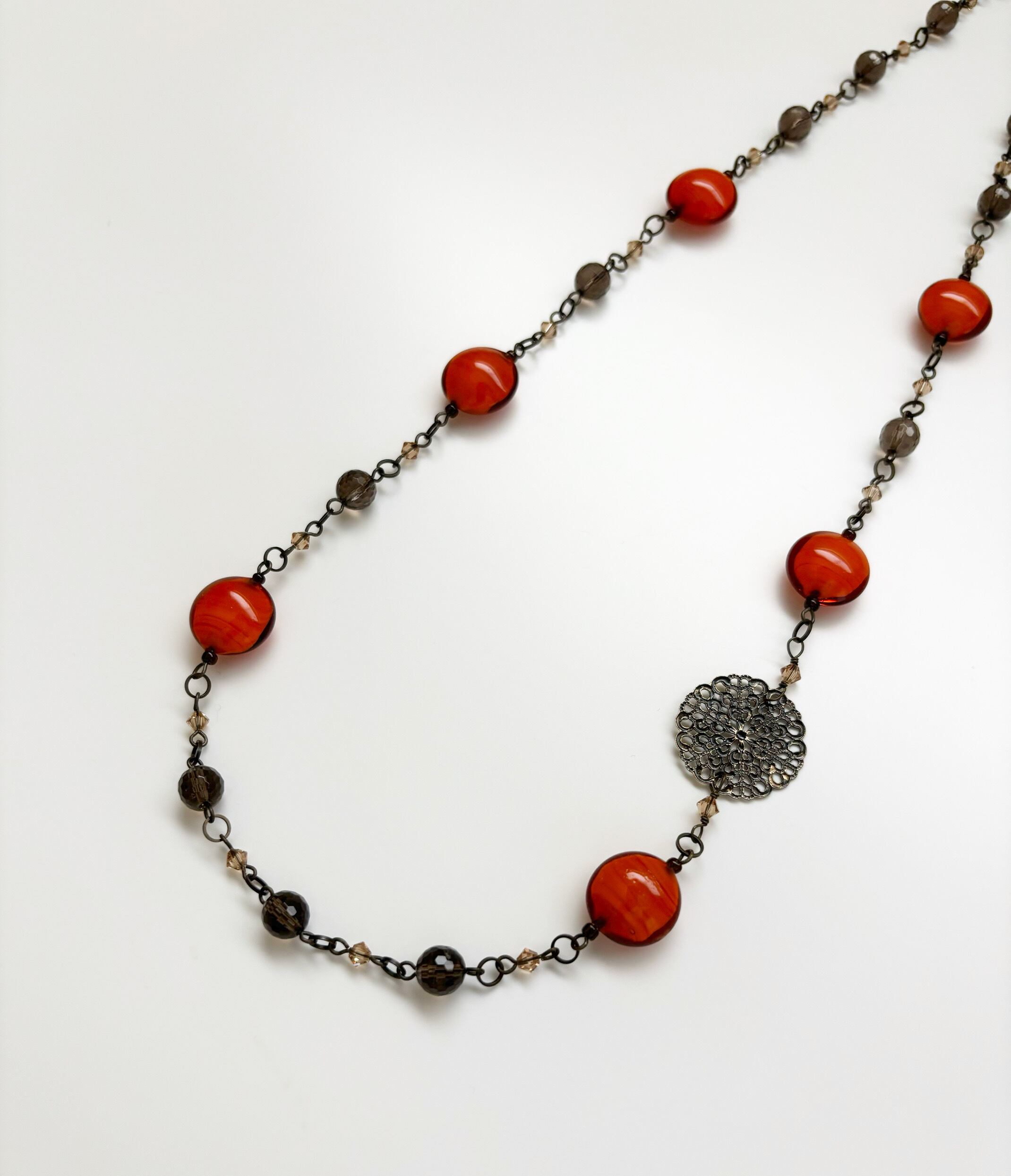 (色)ボルドー (素材)真鍮金具、ベネチアンガラス、ガラス、茶水晶 (サイズ)約78cm