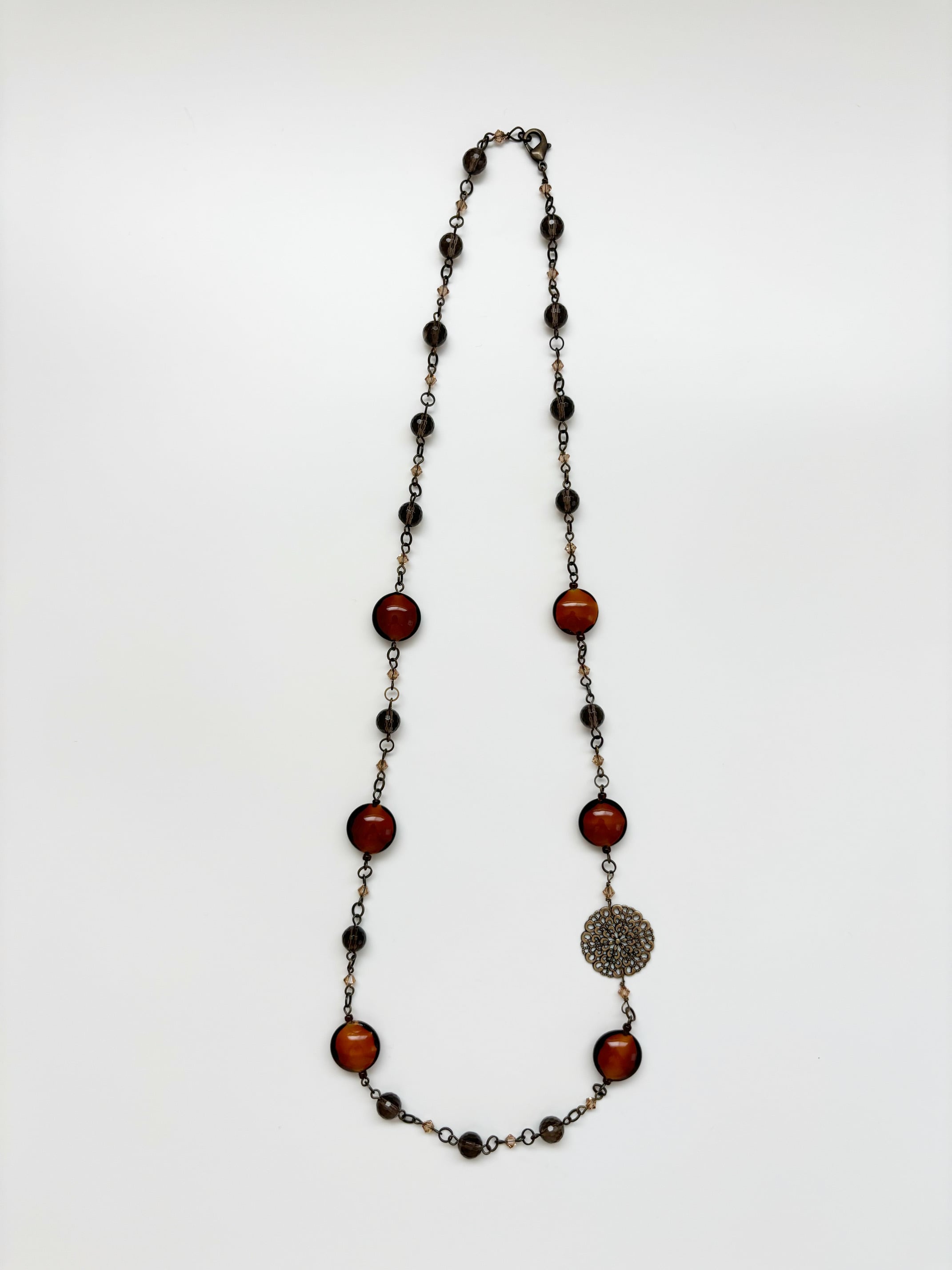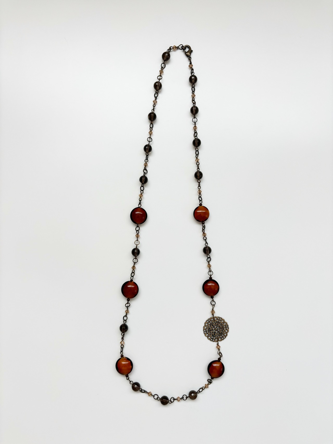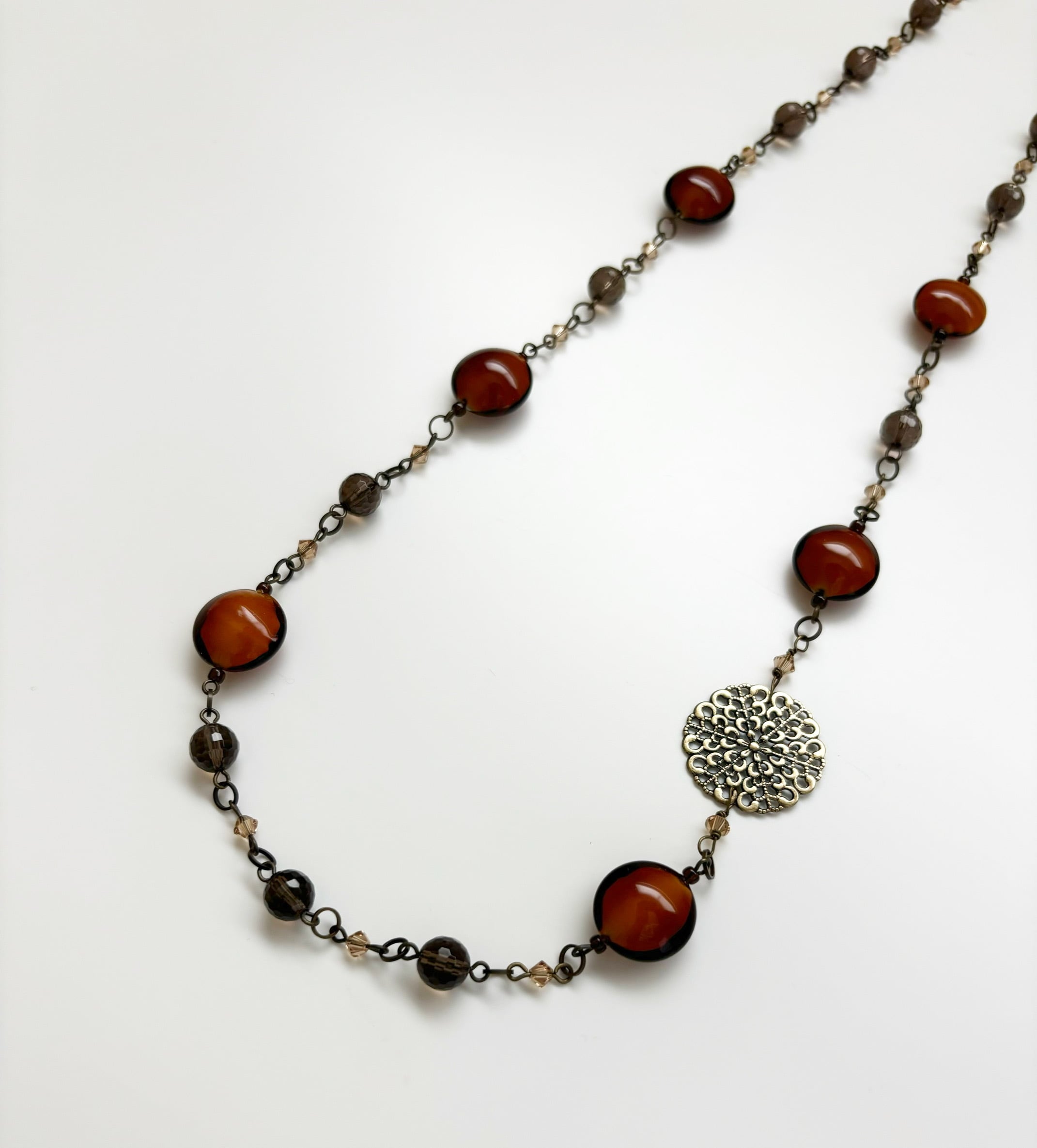 (色)ブラウン (素材)真鍮金具、ベネチアンガラス、ガラス、茶水晶 (サイズ)約78cm