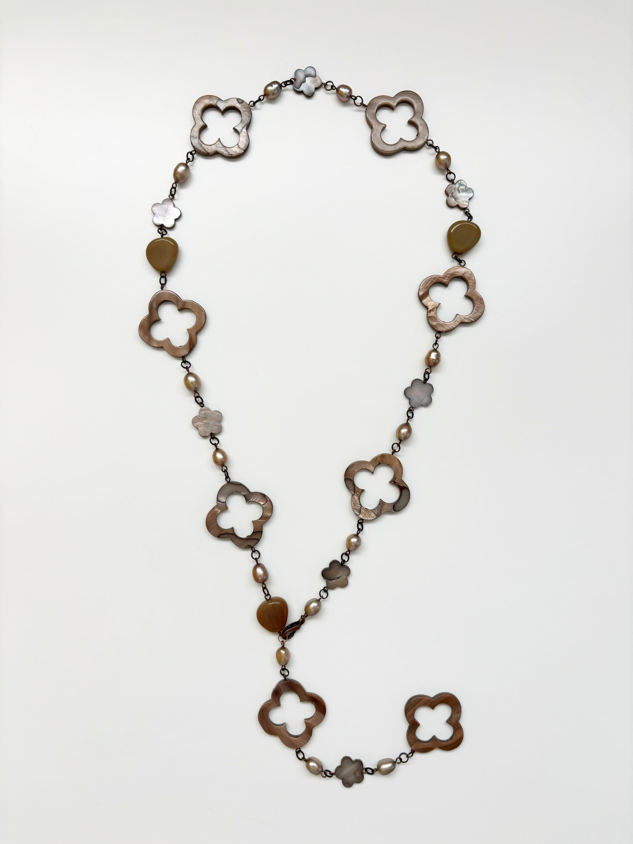 (色)ブラウン (素材)真鍮金具、シェル、淡水パール (サイズ)約84.5cm